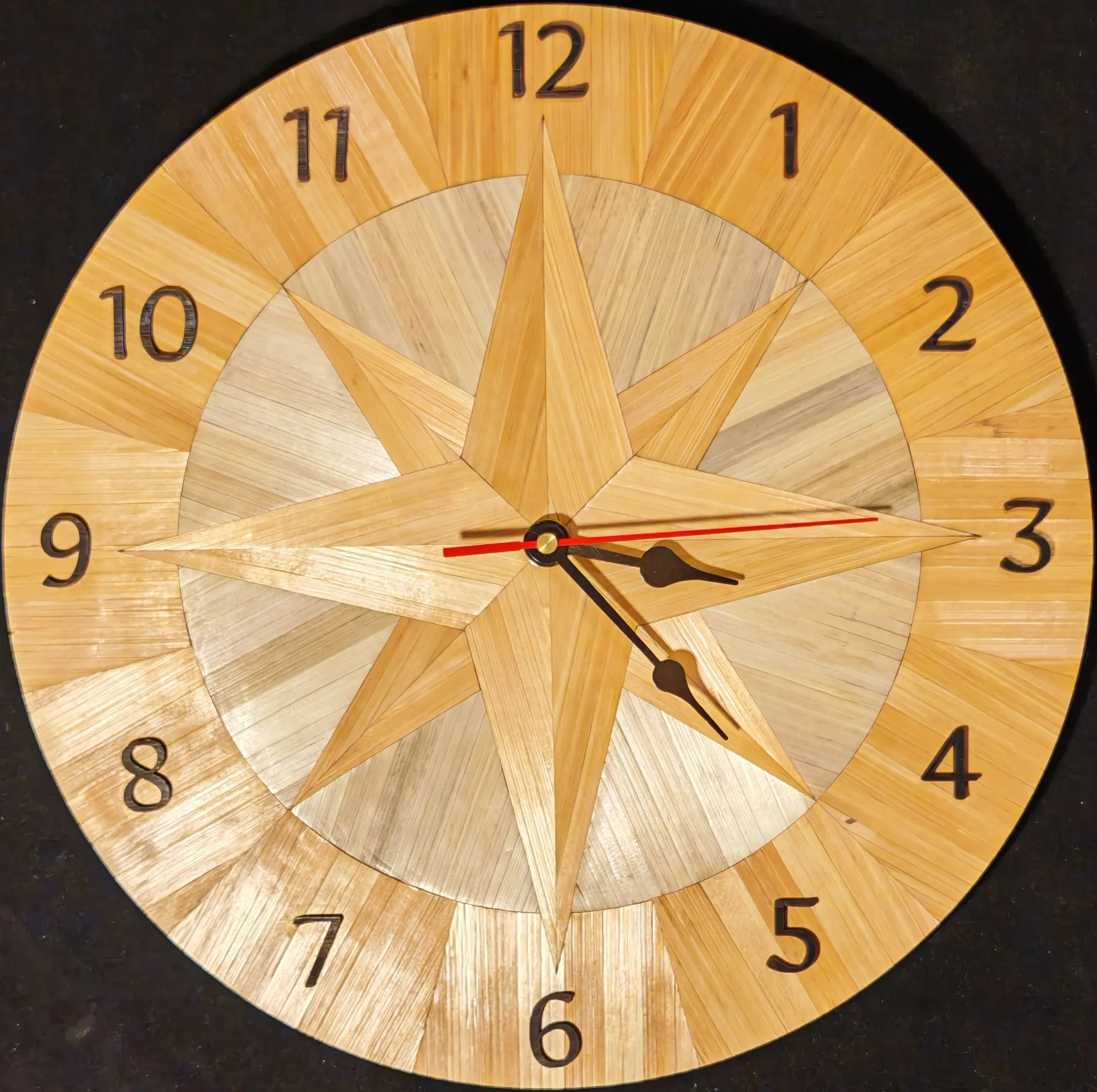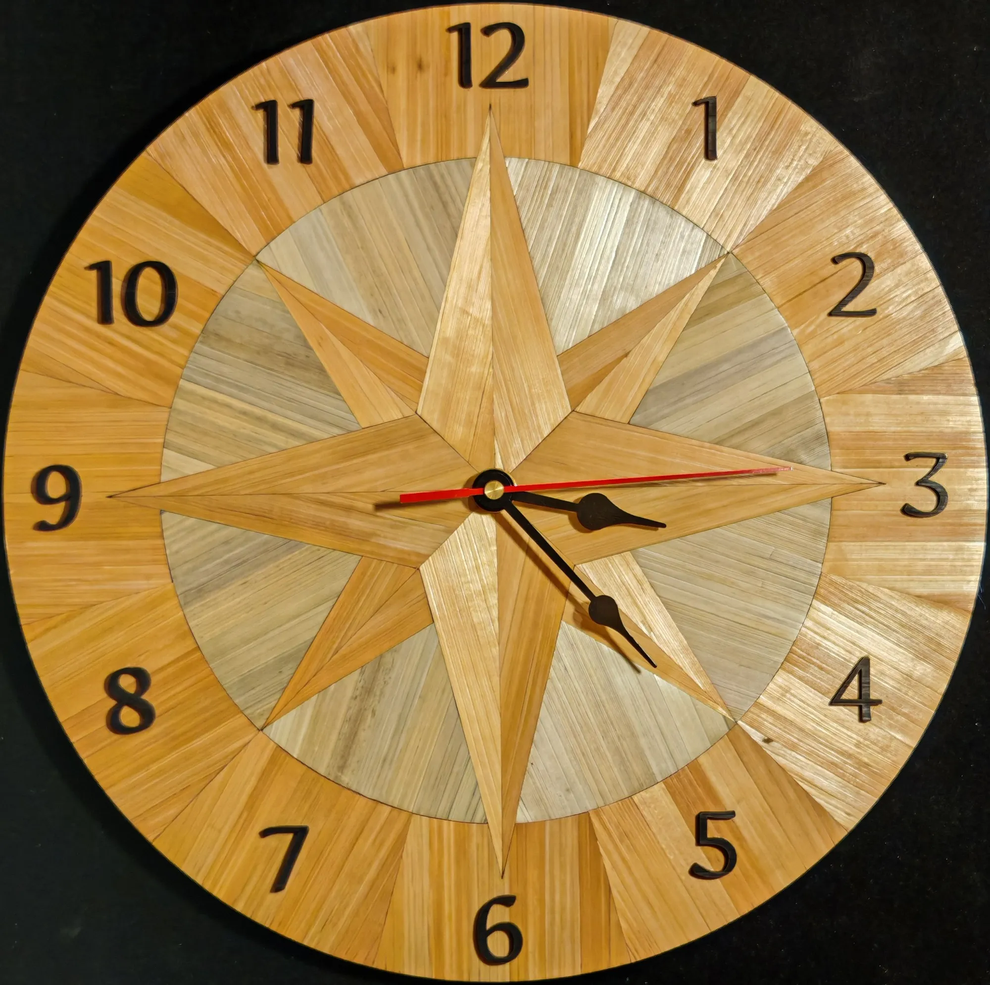 Les horloges sont entièrement plaquées en marqueterie de paille. Les chiffres resortent.