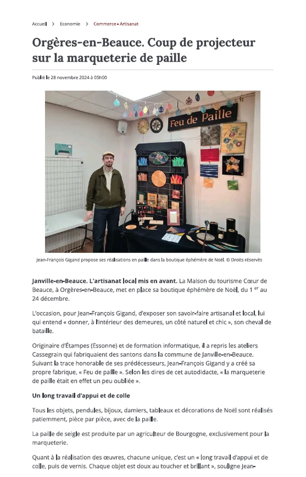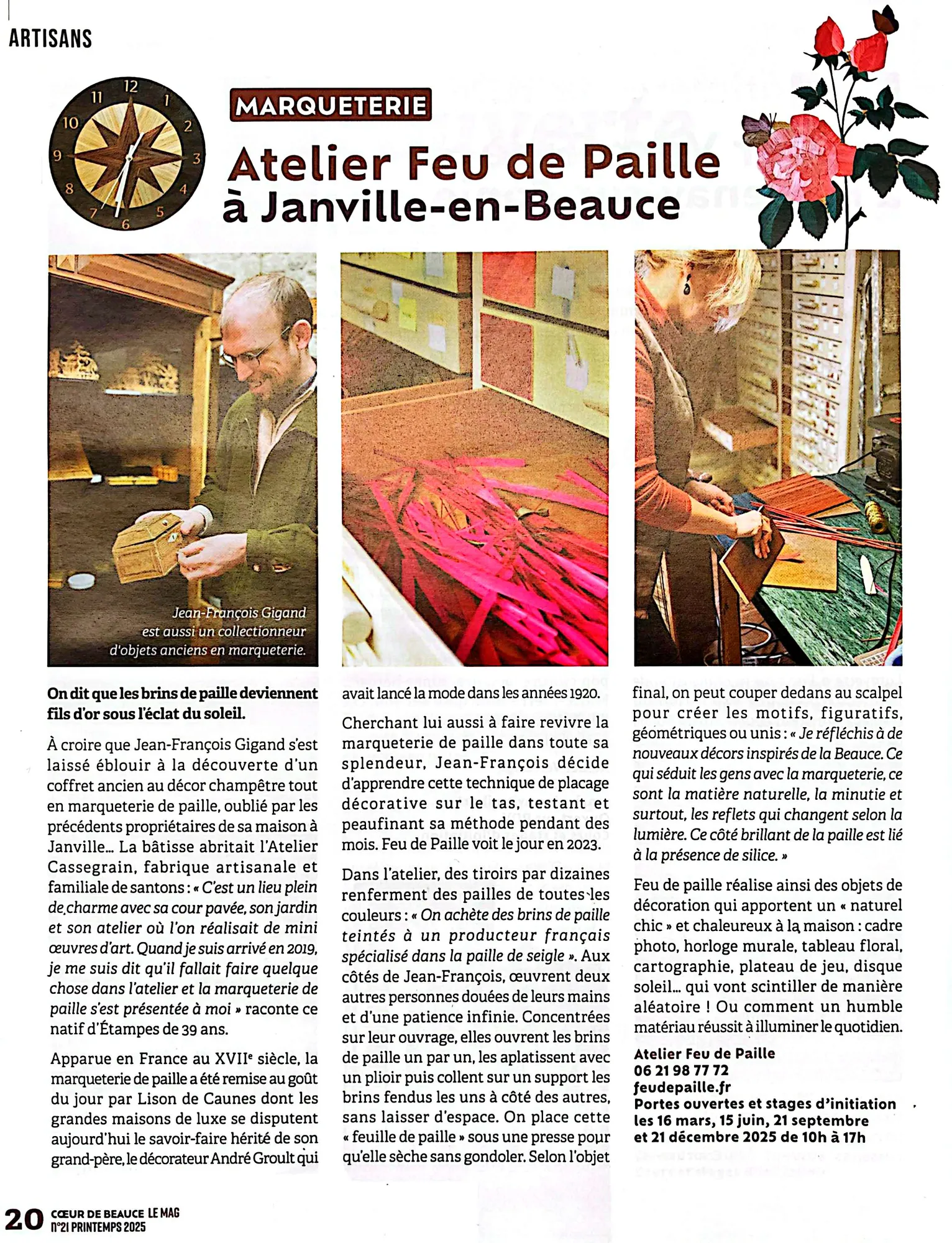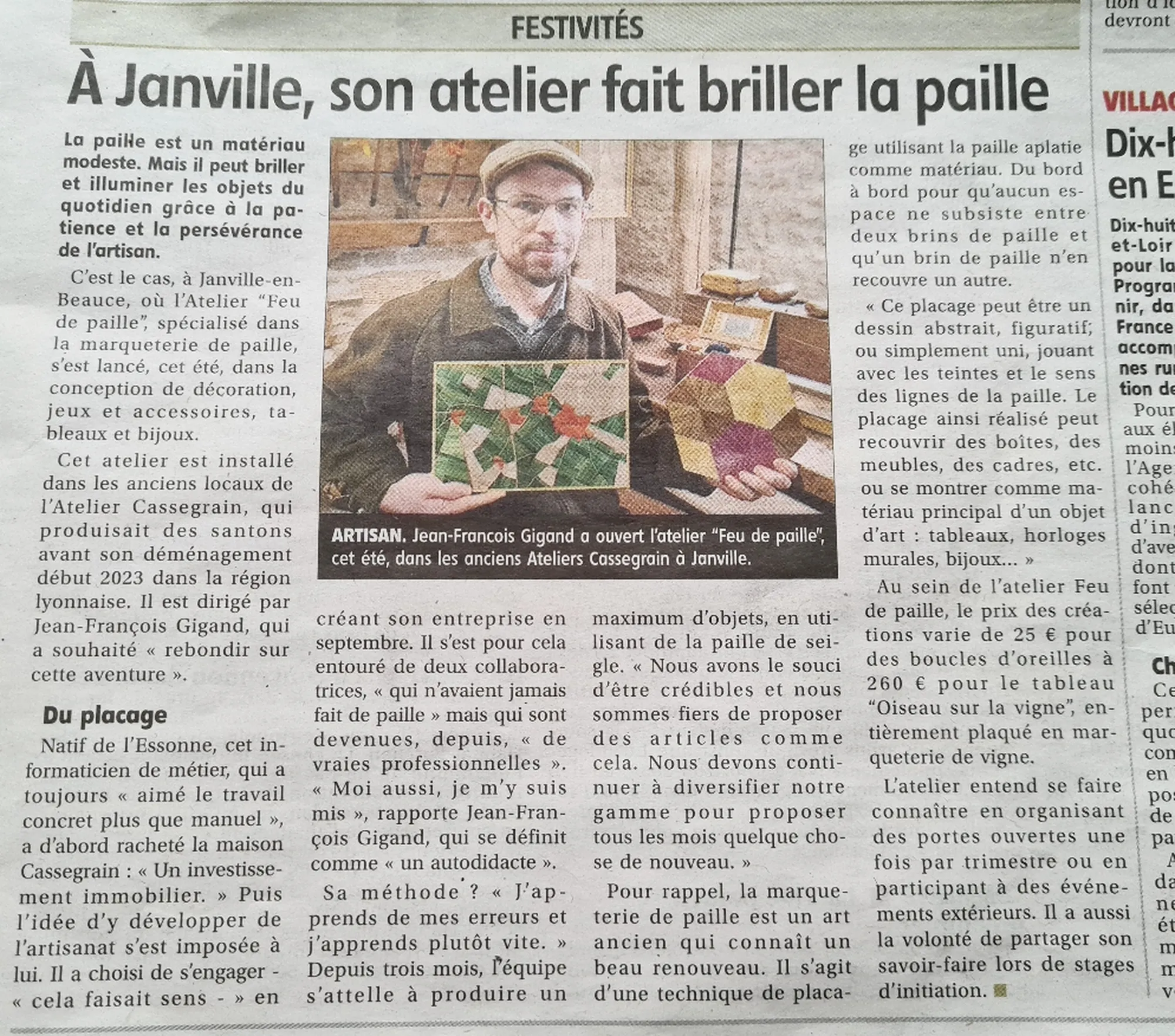 Nos locaux étaient la propriété de l'atelier Cassegrain jusqu'en 2021, qui y fabriquait des santons depuis 1943 ainsi que des peintures et céramiques. C'est à l'œuvre de Jacques et Geneviève Cassegrain (aujourd'hui décédés) qu'on doit l'idée et la vocation de la marqueterie de paille.