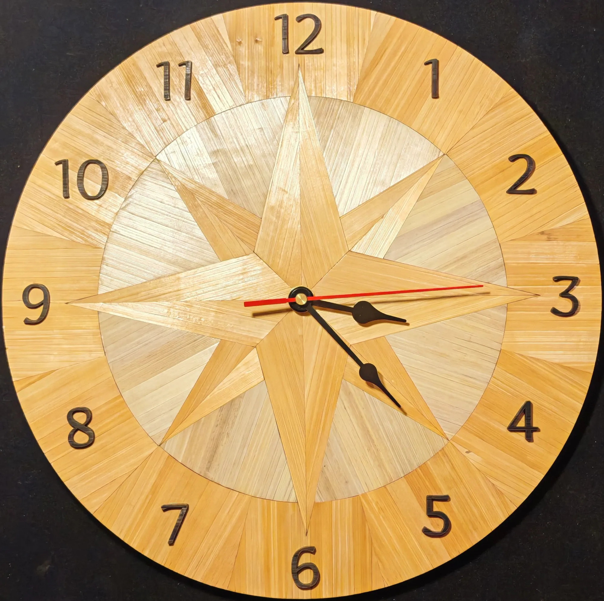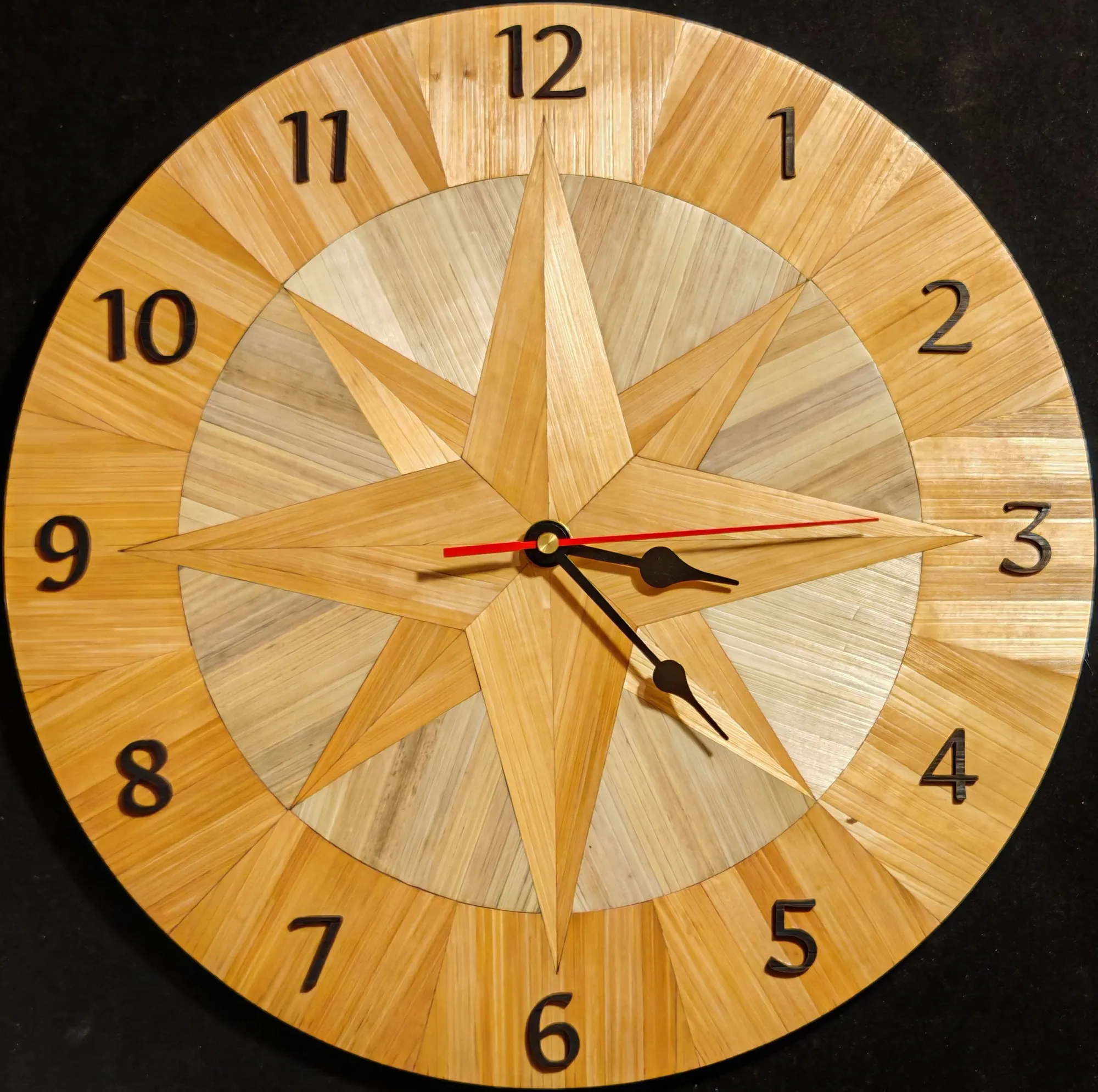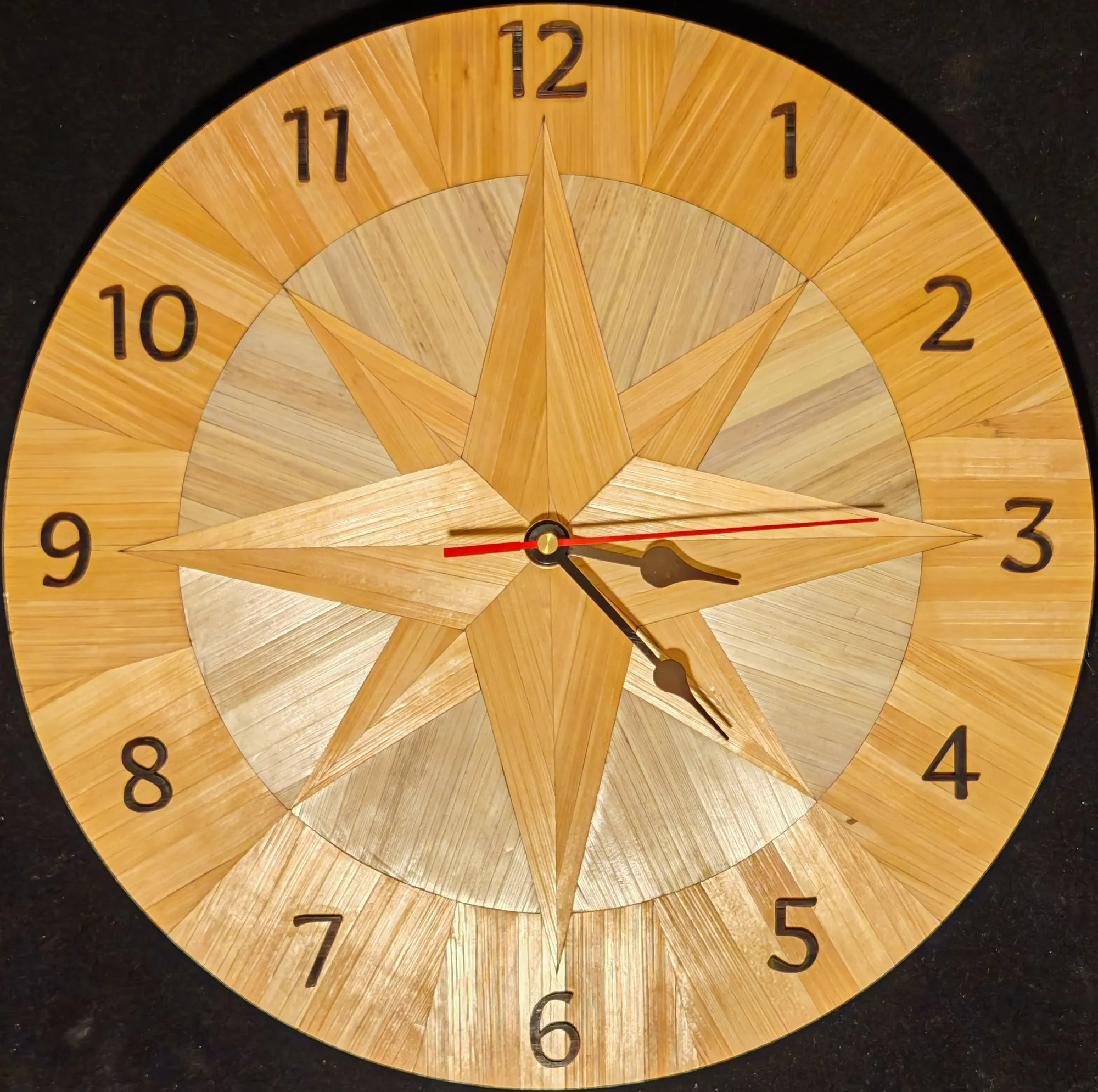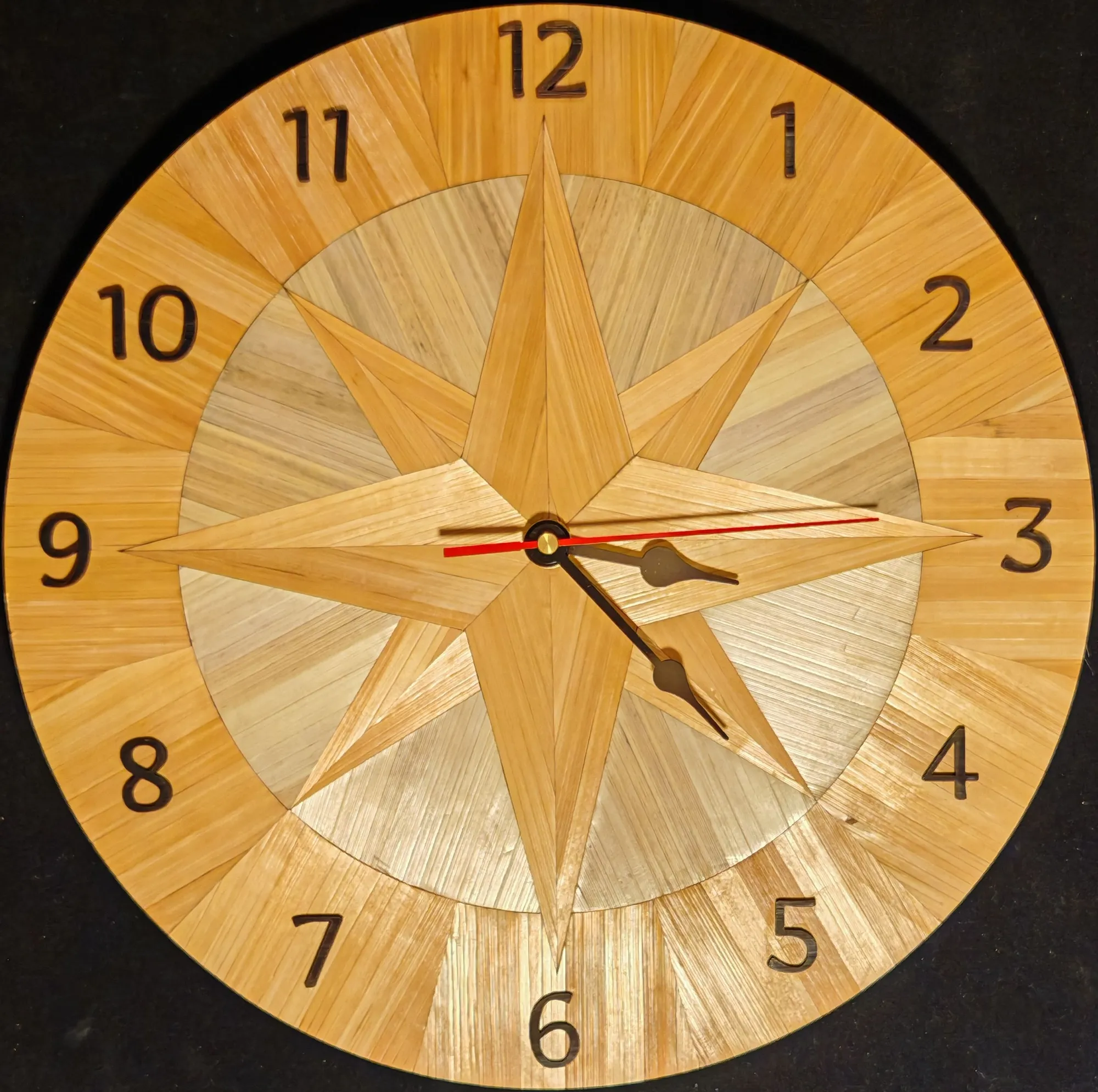 Les horloges sont entièrement plaquées en marqueterie de paille. Les chiffres resortent.
